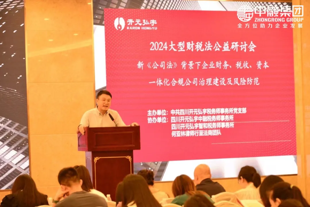 6月5日,由四川开元弘宇税务师事务所主办、中融集团&四川开元弘宇中融税务师事务所协办的2024年新《公司法》背景下,企业治理、财税、资本一体化合规专题研讨会于成都天邑国际酒店正式举行。